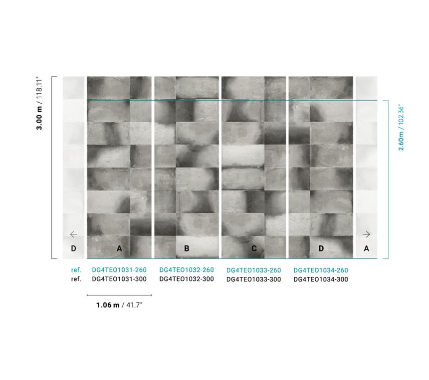 • Pro větší šířku lze kombinovat s fototapetou DG4TEO1032-260, DG4TEO1033-260 a DG4TEO1034-260 - viz foto