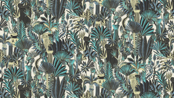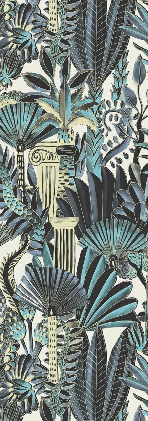 Vliesová obrazová tapeta na zeď, Tresor - motivy rostlin, palem, historických sloupů a váz.