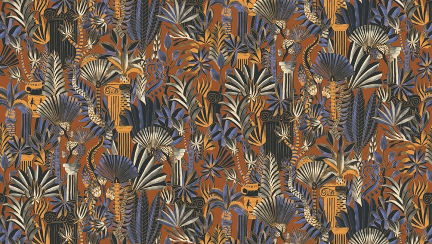 Vliesová obrazová tapeta na zeď, Tresor - motivy rostlin, palem, historických sloupů a váz.
