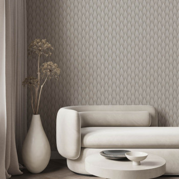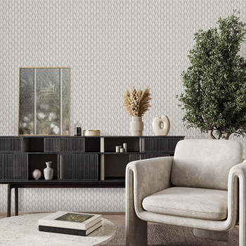 Geometrická vliesová tapeta s vinylovým povrchem, výrazné textury, odstíny pololesklé šedé.
