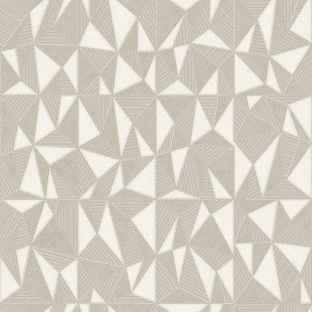 Geometrická vliesová tapeta s vinylovým povrchem, výrazné textury, odstíny pololesklé krémové a béžové.