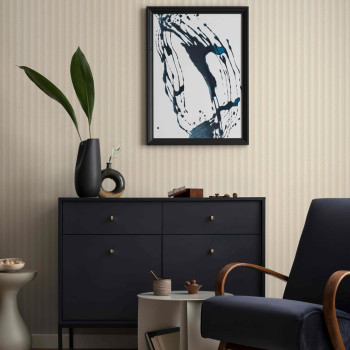 Vliesová tapeta s vinylovým povrchem, imitace proplétané lýkové rohože, odstíny pololesklé béžové vytváří pruhy.