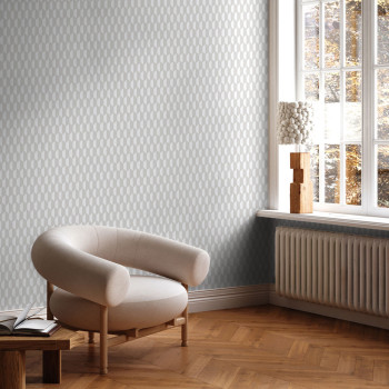 Vliesová tapeta s vinylovým povrchem, látková textura, šedo-bílý geometrický vzor.