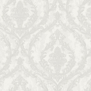 Luxusní krémovo-bílá vliesová tapeta na zeď, zámecký vzor s drobnými stříbrnými třpytkami.