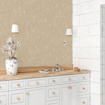 Luxusní hnědá vliesová tapeta na zeď, štukový vzor s drobnými zlatými třpytkami.
