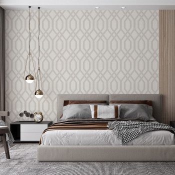 Luxusní pololesklá vliesová tapeta s vinylovým povrchem, krémový podklad, plastické obrysy ve stříbrné a zlato-béžové.