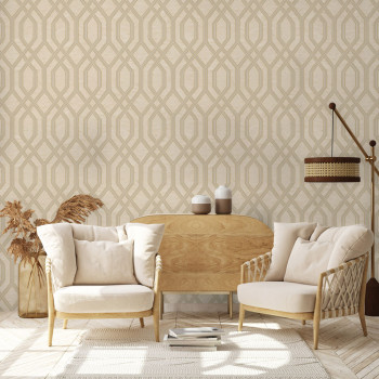 Luxusní pololesklá vliesová tapeta s vinylovým povrchem, béžový podklad, plastické obrysy ve stříbrné a hnědé.