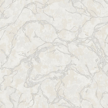 Luxusní vliesová tapeta s vinylovým povrchem, krémový podklad s perlovým pololeskem, mramorování se stříbrným leskem.