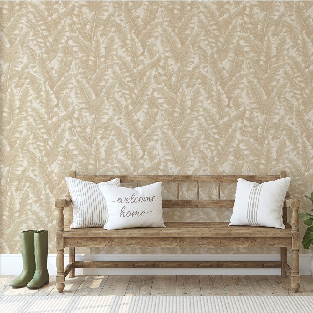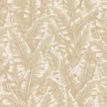 Luxusní vliesová tapeta s vinylovým povrchem, motivy banánových listů v odstínech pololesklé béžovo-hnědé