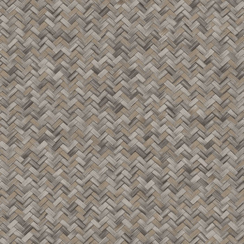 Vliesová tapeta s vinylovým povrchem, imitace lýkové rohože, odstíny pololesklé hnědé.