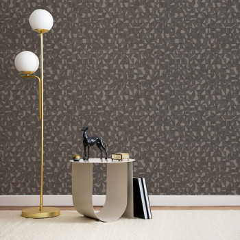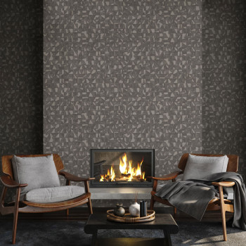 Geometrická vliesová tapeta s vinylovým povrchem, efektní střídání textur, odstíny šedé a šedo-stříbrné.