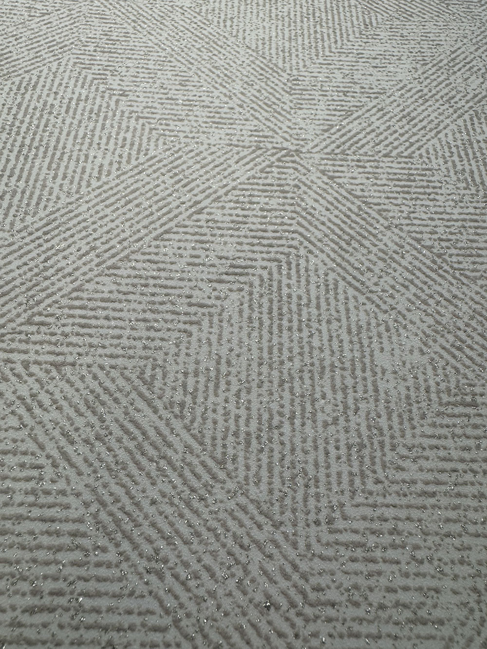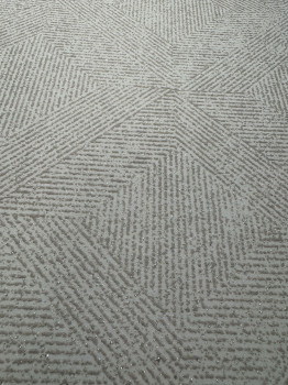 Geometrická vliesová tapeta na zeď, odstíny béžové a krémové, drobné metalické třpytky.