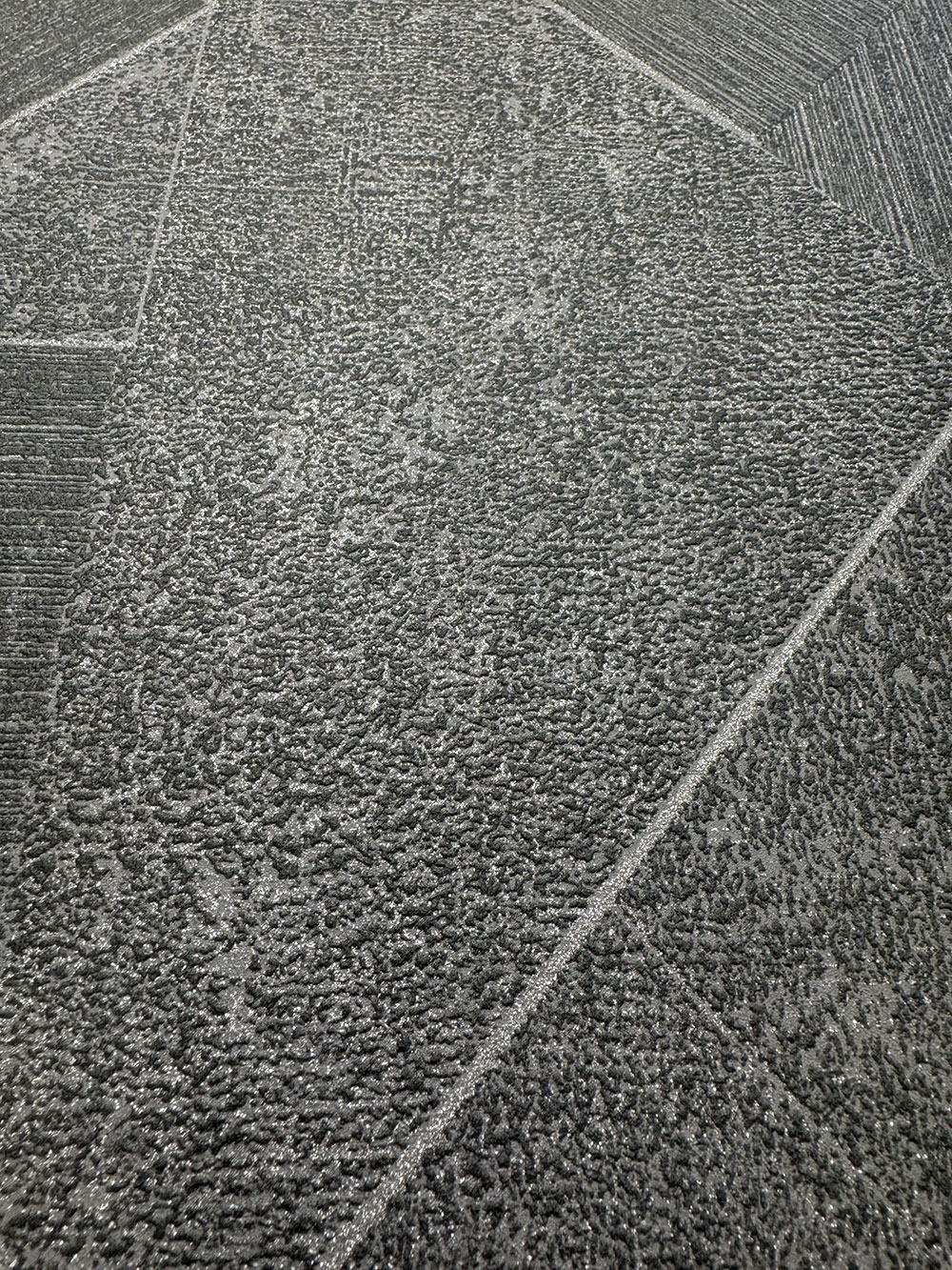 Geometrická vliesová tapeta na zeď, vzor tvořený rozdílnými texturami a metalickými třpytkami.