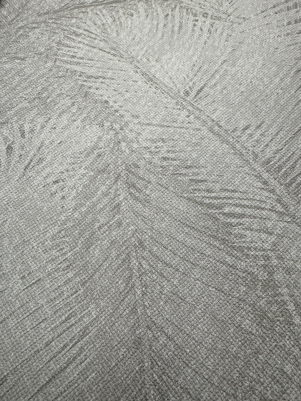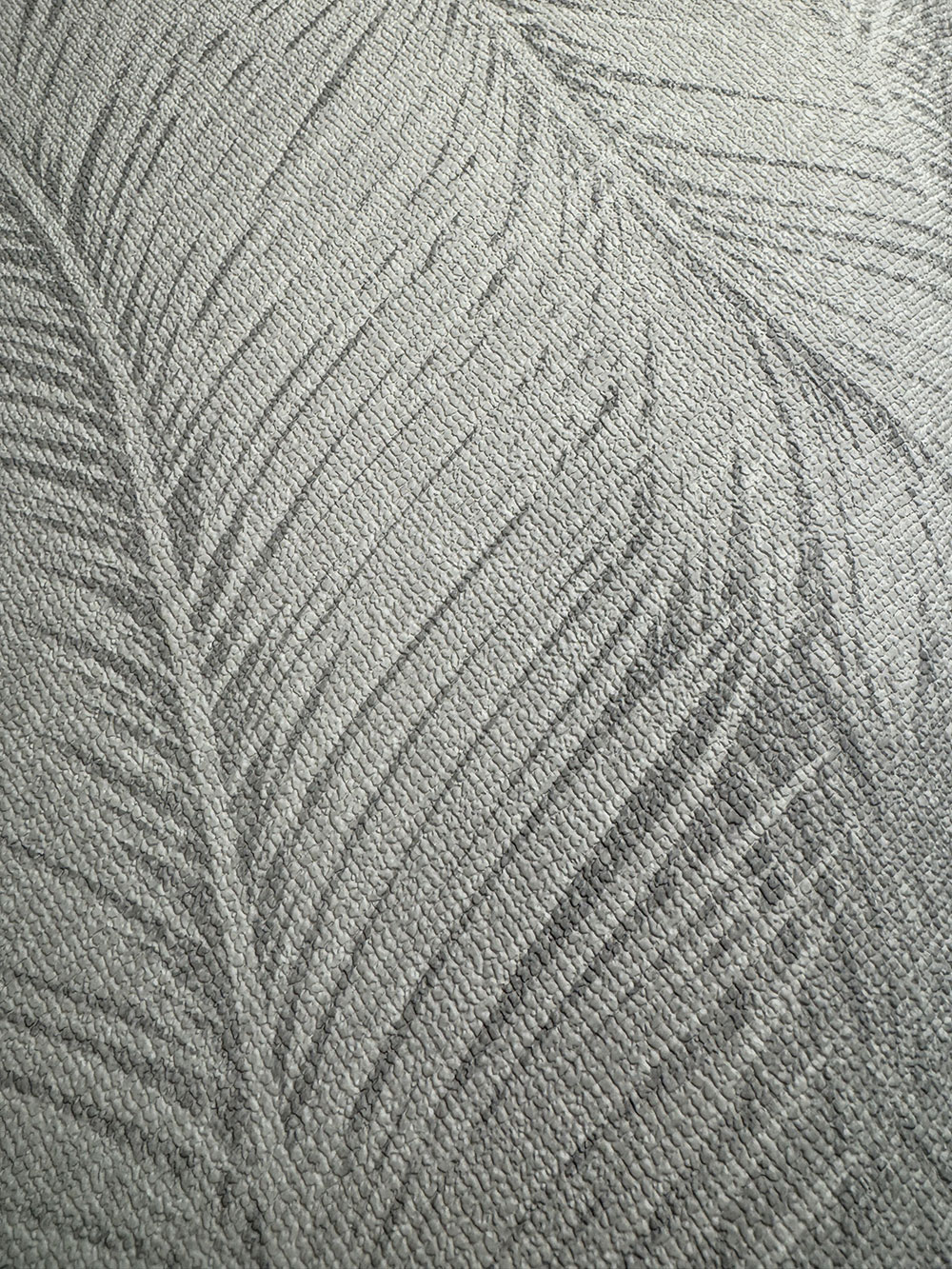 Vliesová tapeta na zeď, motiv palmových listů v šedých odstínech.