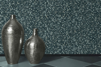 Design drobné mozaiky v šedých odstínech, spáry matná stříbrná. Tapeta je vysoce omyvatelná.