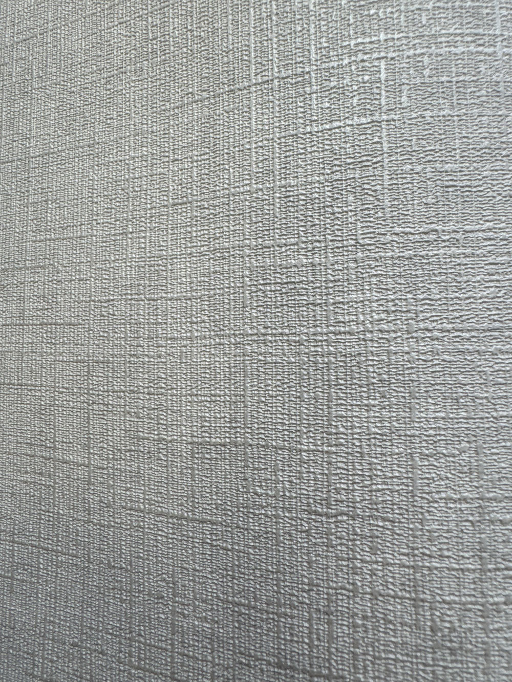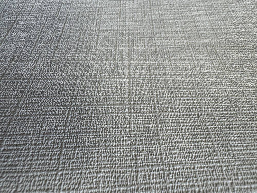 Šedá vliesová tapeta s vinylovým povrchem, jemná textilní struktura.
