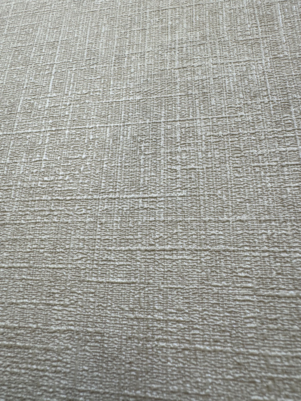 Béžová vliesová tapeta s vinylovým povrchem, jemná textilní struktura.
