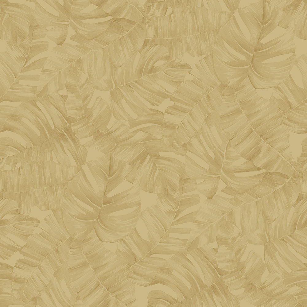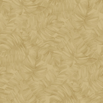 Plastická, okrová vliesová tapeta na zeď, motivy listů Monstery.