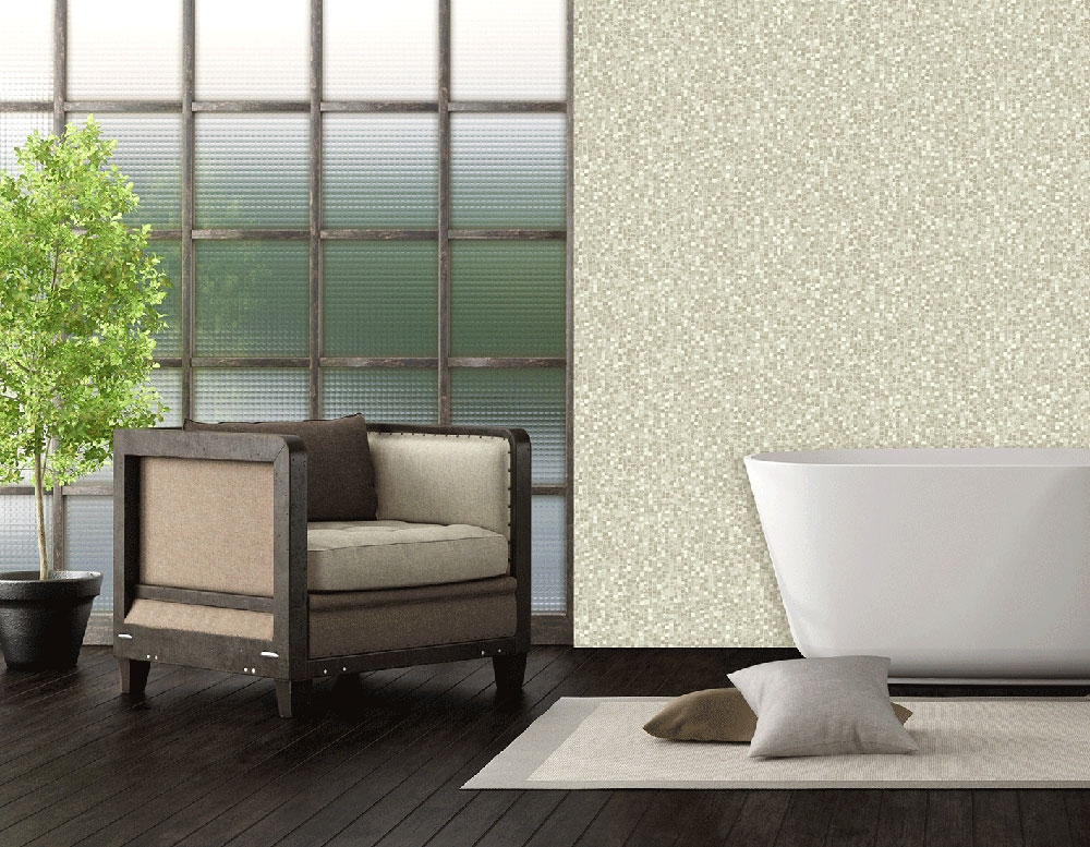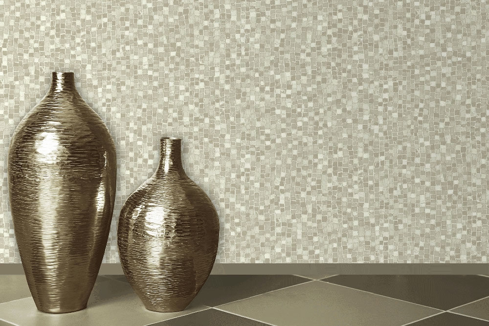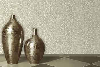 Design drobné mozaiky v odstínech krémové a šedo-béžové. Tapeta je vysoce omyvatelná.