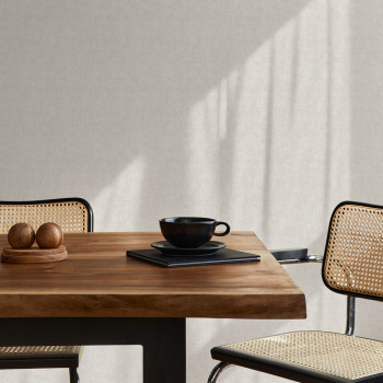 Přírodní / krémová vliesová tapeta na zeď, imitace hrubší textilie.