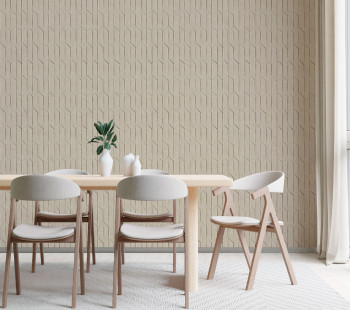 Béžová vliesová tapeta na zeď, 3D geometrický vzor.