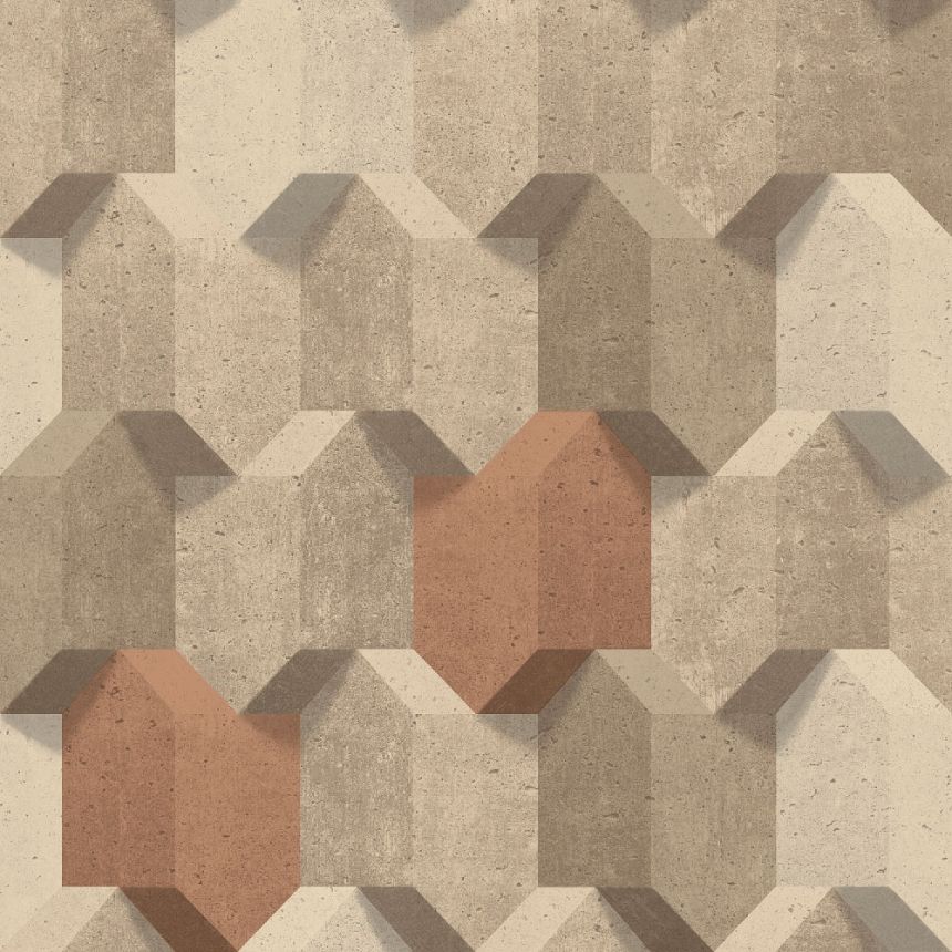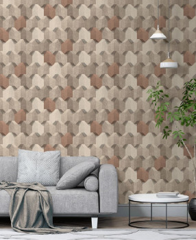 Geometrické vzory přinášejí do interieru nový rozměr. Netradiční geometrický vzor v odstínech hnědé, místy s pololeskem.