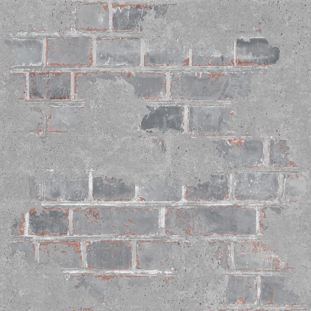 Netradiční design staré cihlové zdi se zbytky omítky. Omítka je plastická.