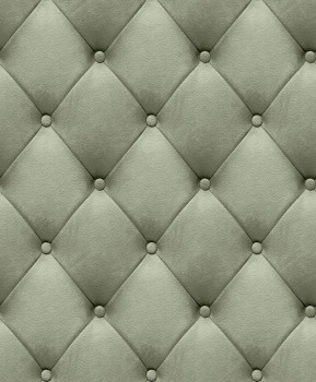 Pololesklá zelená vliesová tapeta s vinylovým povrchem, 3D vzor imitace polstrování.
