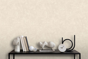 Béžová vliesová tapeta na zeď v imitaci betonu.