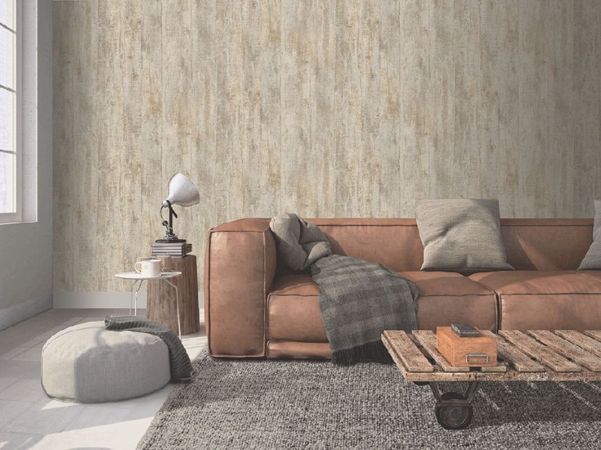Dřevo je přírodní materiál, ze kterého dýchá krása, elegance a pohoda. Design dřeva zútulní každý interiér. Oblíbené dřevěné palubky tentokrát v hnědo-šedých odstínech na vliesové tapetě.