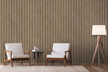 Vliesová tapeta na zeď, 3D design dřevěného obložení, lamel, palubek.