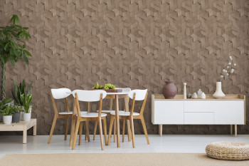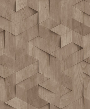 Vliesová tapeta na zeď, 3D design dřevěného obložení v odstínech hnědé, jemná textura.