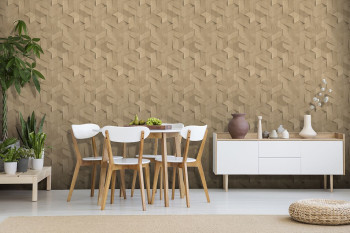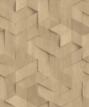 Vliesová tapeta na zeď, 3D design dřevěného obložení v odstínech béžové, jemná textura.