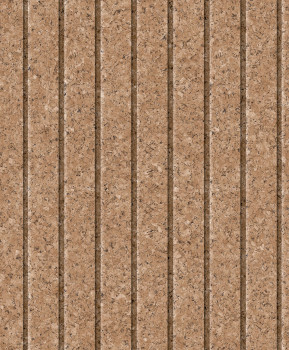 Pruhovaná vliesová tapeta na zeď, imitace korku v odstínech hnědé.