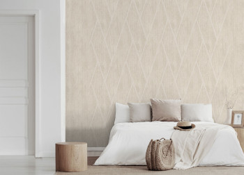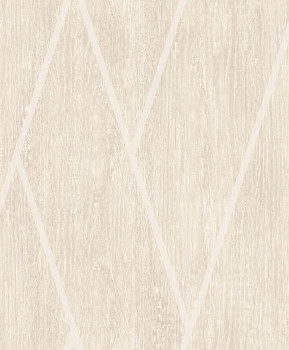 Geometrická vliesová tapeta na zeď, v odstínech krémové, textura dřeva.