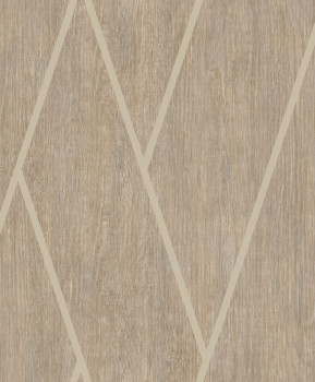 Geometrická vliesová tapeta na zeď, v odstínech hnědé, kovově metalické linie, textura dřeva.