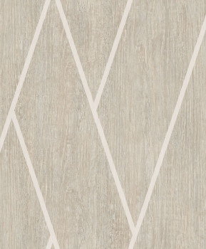Geometrická vliesová tapeta na zeď, v odstínech béžové, textura dřeva.
