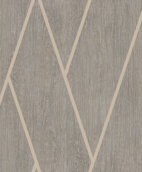 Geometrická vliesová tapeta na zeď, v odstínech šedo-hnědé, textura dřeva, pololesklé linie.