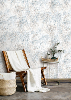 Vliesová tapeta na zeď, dekor mramoru v odstínech modré a hnědé, jemná textura.