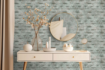 Vliesová tapeta na zeď, 3D dekor mramorového obkladu v odstínech zelené a hnědé, jemná textura.