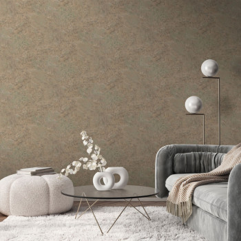 Luxusní vliesová tapeta na zeď, vinylový povrch, vzhled štukové omítky, odstíny hnědé.