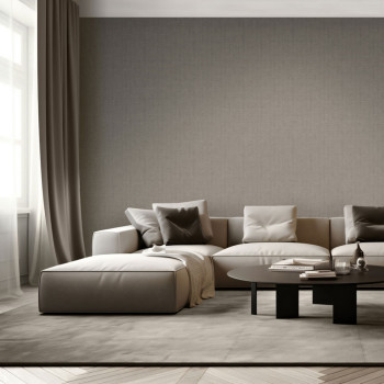 Luxusní vliesová tapeta na zeď, vinylový povrch, vzhled látky v odstínech hnědé, stříbřitý pololesk.