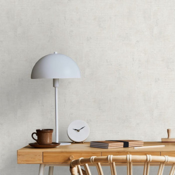 Vliesová tapeta s vinylovým povrchem, design evokující přírodní materiály v odstínu šbílé a světle šedé.