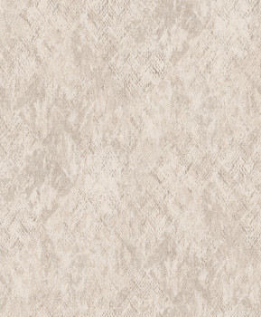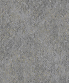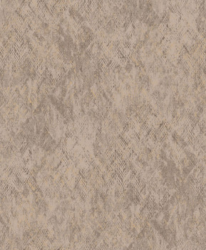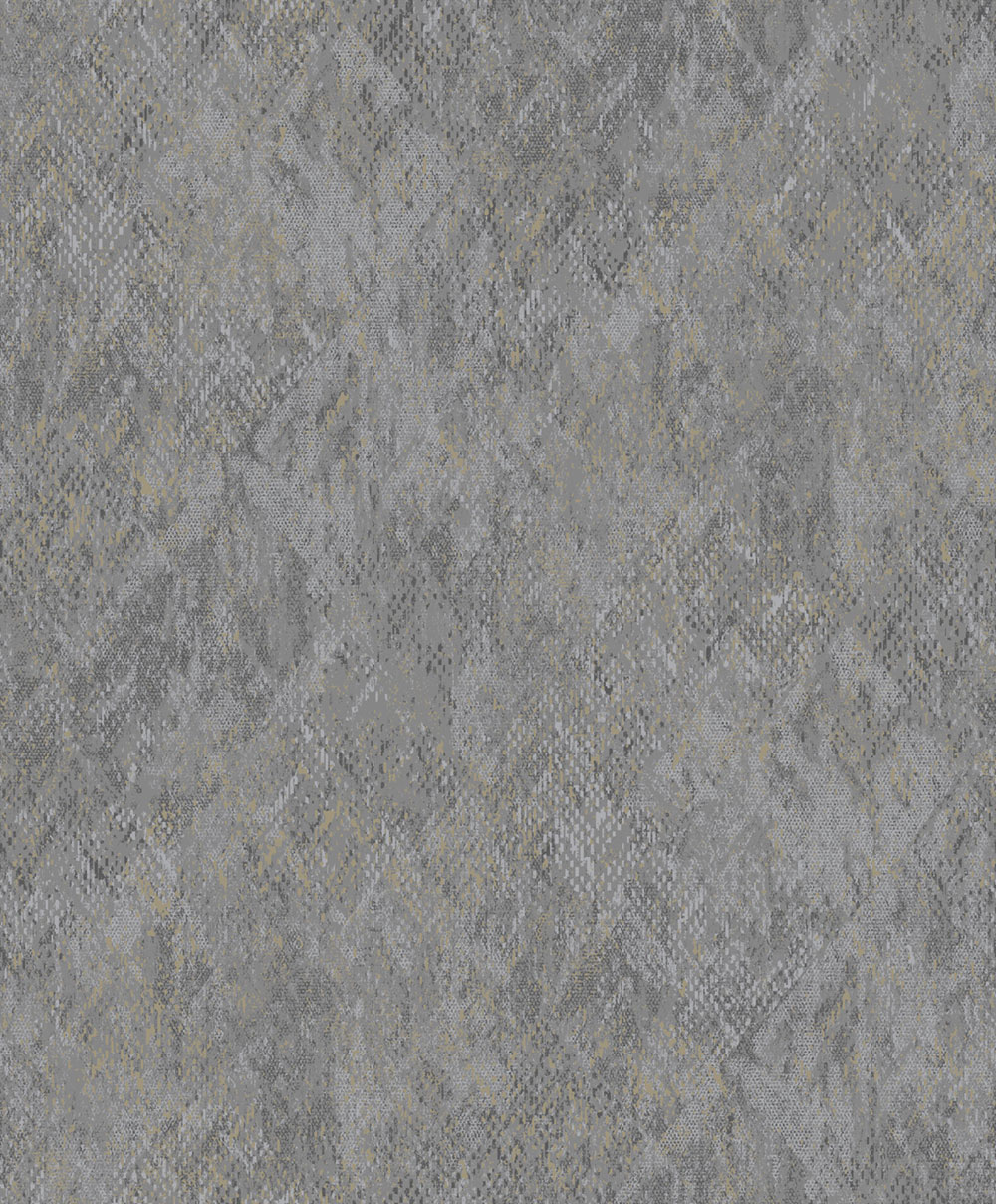 Vliesová tapeta s vinylovým povrchem, design inspirovaný hadí kůží, odstíny šedé s metalickými zlatými akcenty.