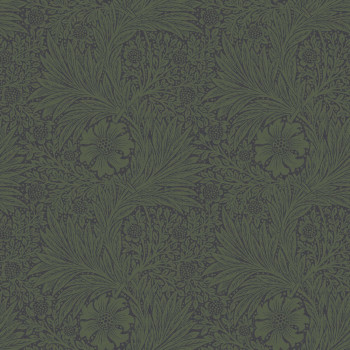 Pololesklá vliesová tapeta na zeď, bohatý květinový ornamentální vzor v odstínech zelené.