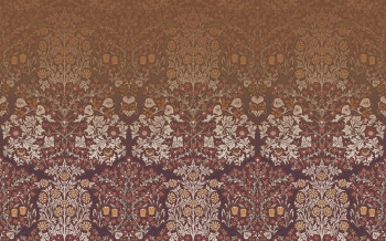Vliesová obrazová tapeta na zeď, bohatý květinový ornamentální vzor v odstínech cihlově červené, vínové.