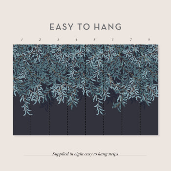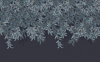 Vliesová obrazová tapeta na zeď, bohatý vzor s větvičkami v odstínech modré.