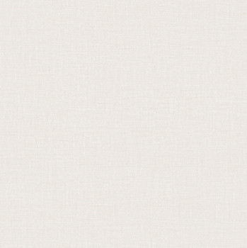 Plastická vliesová tapeta s vinylovým povrchem, imitace pololesklé bílé hrubší textilie.