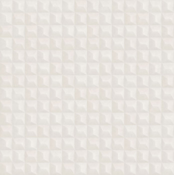 Jemně plastická, pololesklá vliesová tapeta s vinylovým povrchem, 3D geometrický vzor v odstínech krémové.