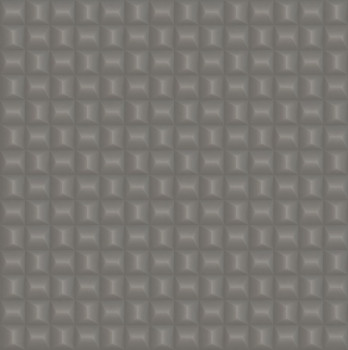 Jemně plastická vliesová tapeta s vinylovým povrchem, 3D geometrický vzor v odstínech šedé, metalický pololesk.